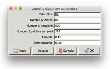 In this window you can set the various parameters of the learning dictionary algorithm (see paper for details).