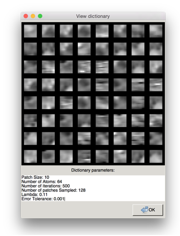 9. Click OK to train the dictionary. (please wait while the algorithm works)
